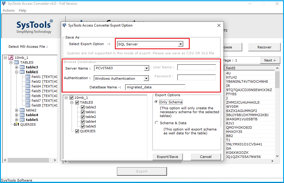 Using this utility, not only you can export both schema and data but you get the option to export only schema as well. Moreover, it recovers your deleted records of ACCDB files which you can choose to export as well. In addition to that, you can use this ACCDB to SQL Server expert tool on any Windows machine as it is highly compatible with all Windows OS versions.