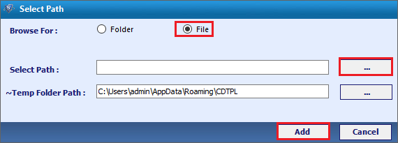 - Click on the Add File button. (Note: If you are having Main Identity Folder (.olk) file, no need to check Advance Scan option.)